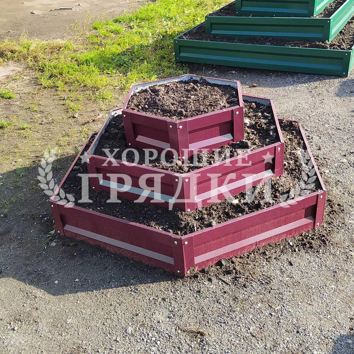 Клумба зеленая «Шестигранная 4 яруса» Ø 1.8м-1.4м-1м-0.6м